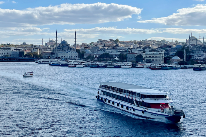 Sulla riva asiatica la città si muove con un ritmo più lento. Nei quartieri il tempo sembra dilatarsi: si sentono le voci nei mercati, il tintinnio del tè versato, il profumo della carne arrostita. In questi luoghi si mangia come mangiano i turchi, si osserva la vita scorrere senza scenografie. È una porta d’ingresso silenziosa ed autentica. Attraversare il Bosforo in battello è un momento sospeso, lo stretto divide i continenti ma unisce l’anima. Sulle sponde si intravedono ville ottomane, residenze moderne, giardini meravigliosi. Il profilo si disegna lentamente, come un racconto che si lascia scoprire a tratti. Il vento porta con sé odori salmastri e note lontane di spezie. I gabbiani seguono le scie delle imbarcazioni, mentre il sole riflette sull’acqua e trasforma tutto in una splendida cartolina. È un’immagine che resta impressa nella memoria.