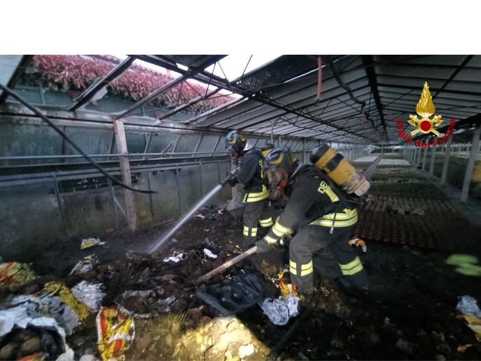 Incendio all'interno di una serra ad Albenga: rogo spento dai vigili del fuoco (FOTO e VIDEO)