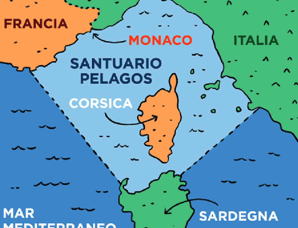 L’estensione del Santuario Pelagos riprodotta nel fumetto “Io sono Balenottera”