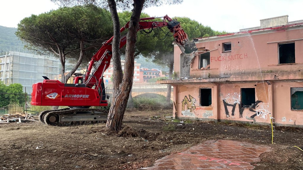 Questa mattina sono iniziate le opere di demolizione degli edifici dell’ex complesso Ariston di Andora, un’area privata in stato di abbandono e degrado da quasi 20 anni. Una vera ferita nel panorama del litorale andorese.