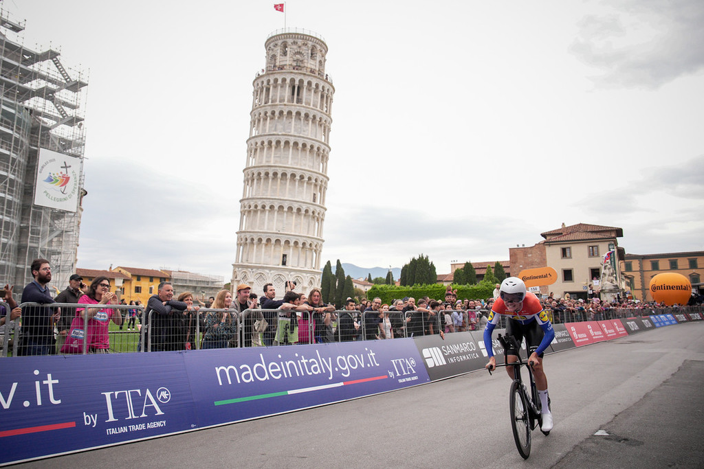A sorpresa la crono la vince Hoole di una Lidl-Trek sempre più protagonista davanti ai favoritissimi britannici Tarling e Hayter. Ottima prova per Cattaneo e Affini, Frigo sorprende con un buon ottavo posto. Poi tre australiani, Vine e i compagni della Jayco Plapp e Hepburn.