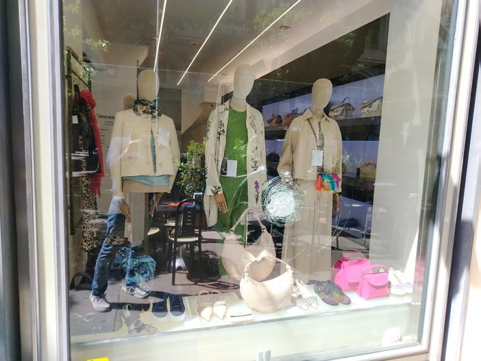 È stata vandalizzata questa notte una vetrina del negozio di calzature, pelletteria e accessodi Prini 2 tra via Paleocapa e Corso Italia a Savona.