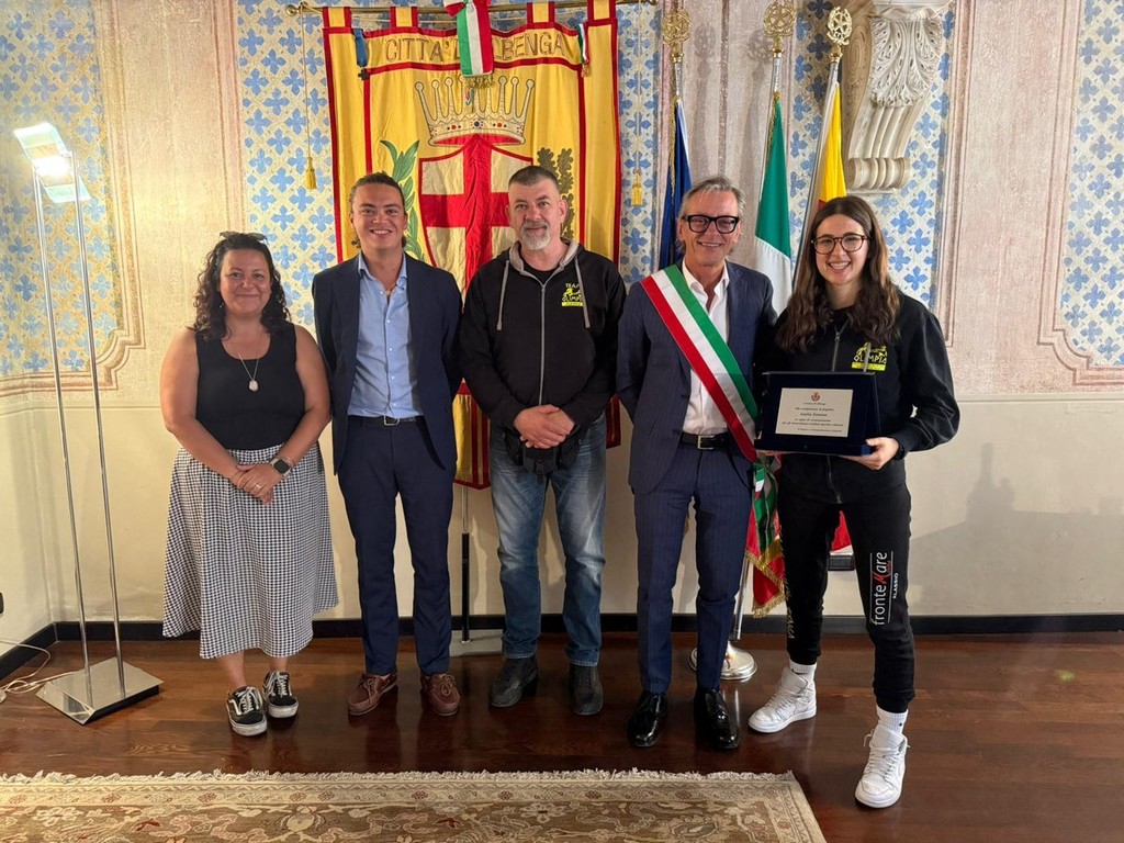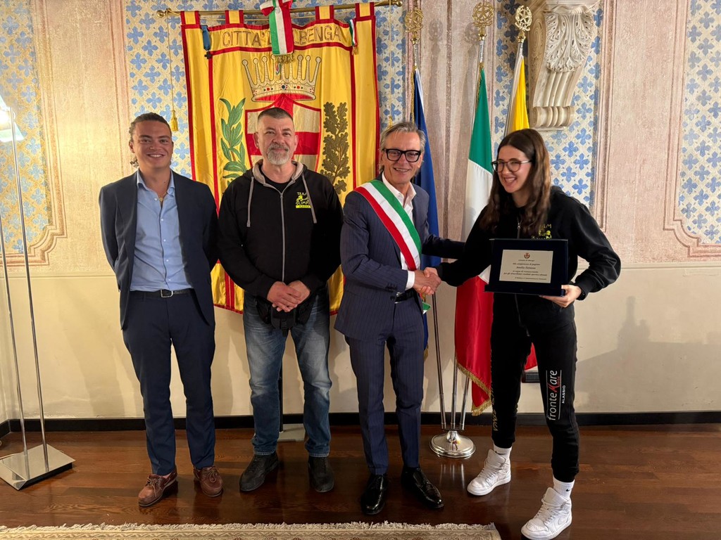 Per celebrare i successi di Amelia e augurarle il meglio per il futuro, il sindaco Riccardo Tomatis ha consegnato ad Amelia, a nome dell’Amministrazione e della Città, una targa di riconoscimento, simbolo del sostegno della città a questa giovane promessa del pugilato italiano.