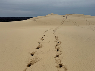 Ad Arcachon, affacciata sull'Atlantico, dove ci siamo fermati per gustare ostriche freschissime direttamente dai produttori locali. Da lì abbiamo raggiunto la Dune du Pilat, la collina sabbiosa più alta d'Europa. Salirla a piedi nudi è stato impegnativo ma appagante: sabbia fine sotto i piedi, il vento tra i capelli e un panorama che toglieva il fiato. Dall'alto si apre un paesaggio sorprendente, fatto di contrasti: alle spalle, il bosco di pini marittimi; di fronte, l'oceano dai colori quasi tropicali. Una meraviglia inattesa, che da sola vale il viaggio.