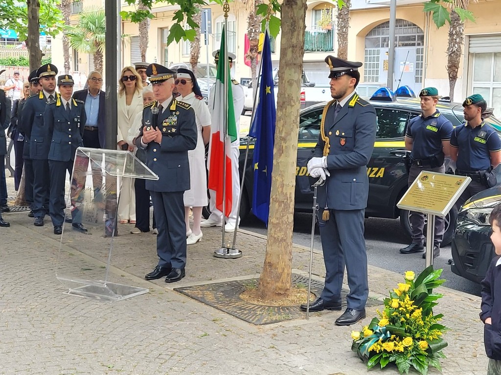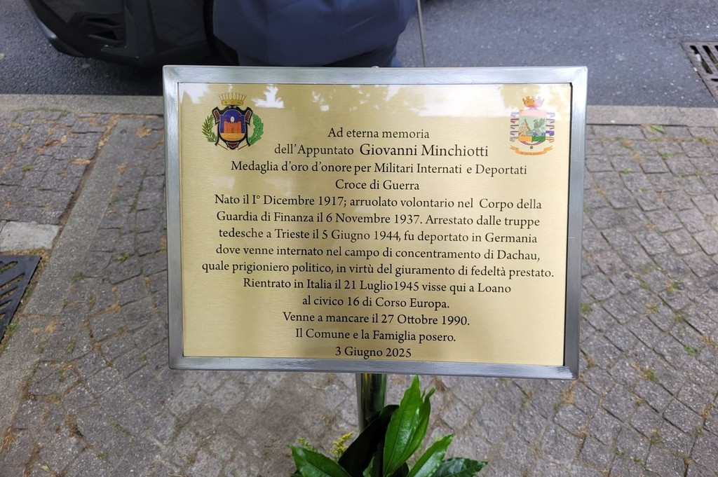 “Giovanni Minchiotti fu un uomo dello Stato, un militare fedele al giuramento e ai valori della Costituzione ancor prima che questa esistesse. Dopo 1'8 settembre 1943, come migliaia di militari italiani, rifiutò di collaborare con il nazifascismo. Per questo venne deportato nel campo di concentramento di Dachau. Scelse la dignità, scelse la libertà. E pagò con mesi di sofferenze, umiliazioni e privazioni. Nel 2023, la Repubblica Italiana gli ha conferito la Medaglia d'Oro d'Onore per i Militari Internati e Deportati e la Croce di Guerra. Un riconoscimento doveroso, che ribadisce che la memoria è un dovere dello Stato e della comunità. Ma se oggi siamo qui, lo dobbiamo alla tenacia e alla determinazione di sua figlia, Pinuccia Minchiotti. Con amore e senso del dovere civile, ha voluto restituire al padre un posto nella storia di questa città. Ha saputo coinvolgere e ricevere il sostegno della Guardia di Finanza e del Comune di Loano. Un ringraziamento particolare va al colonnello Noceti, al tenente Magrone, e al tenente (oggi in congedo) e amico Florenzo De Santis. Grazie per aver condiviso e sostenuto con tutti noi questo percorso di memoria”.