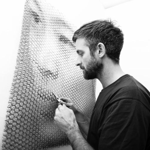 Giorgio Tentolini, nato nel 1978, è un artista italiano conosciuto per i suoi ritratti e figure realizzati con la rete metallica. Nel 2024 ha partecipato alla Biennale di Venezia, confermando l’originalità e la forza del suo lavoro anche a livello internazionale.