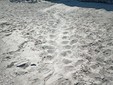 In caso di formazione del caratteristico cono che rappresenta il primissimo step della possibile schiusa delle uova, viene allestito il corridoio ombreggiato dal nido al mare per proteggere maggiormente gli eventuali piccoli nella breve strada da compiere fino all’acqua e posizionata una bindella per le misurazioni.