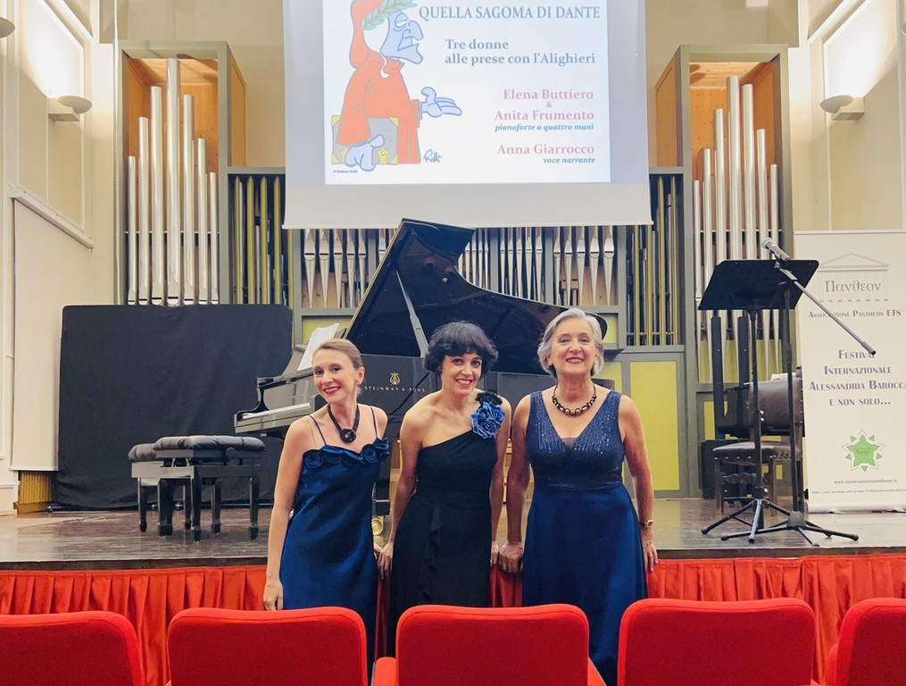 Lo spettacolo - Un singolare percorso d’ascolto che alle musiche tratte da La Divina Commedia: illustrazioni drammatico-musicali per pianoforte a quattro mani scritta nel 1875 da Cesare San Fiorenzo (Genova 1833-1909) intreccia i brani tratti dal testo comico Donne di Dante di Daria Pratesi, scrittrice teatrale e sceneggiatrice cinematografica. I testi raccontano con ironia e profondità un Dante quotidiano che, prima di essere sommo, è uomo, visto attraverso le donne che hanno segnato la sua vita e la sua opera: Beatrice, Francesca da Rimini, Piccarda Donati, Pia de’ Tolomei e Gemma Donati.
