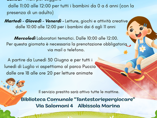 A partire da lunedì 30 giugno riapre la biblioteca "Tantestoriepergiocare" in Via Salomoni 4.