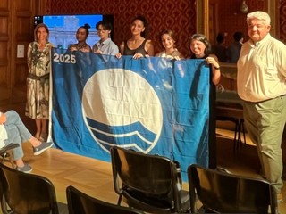 Venerdì 27 Giugno scorso presso la Sala Rossa del Comune si è tenuta la cerimonia di consegna della Bandiera Blu alla presenza dell'Assessore Barbara Pasquali, dell'Associazione Bagni Marini nella persona del Presidente Schiappapietra e delle Associazioni che si occupano di tutela dell'ambiente. Erano presenti anche alcuni studenti dell'Istituto Ferraris-Pancaldo, insieme alla Prof. Scilieri a testimoniare l'esperienza del bel progetto “Non vali una cicca, se la butti per terra”.