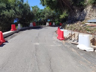 I lavori hanno comportato la realizzazione di opere di sostegno in cemento armato su pali a valle della carreggiata, il riordino del sistema di regimentazione delle acque, la ricostruzione del pacchetto stradale e l’installazione di una nuova barriera di protezione.