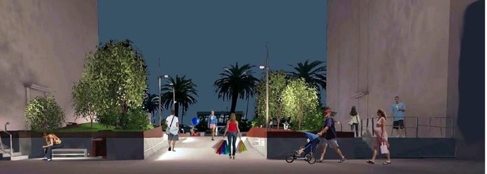 Verrebbe quindi ampliato il percorso pedonale di via Colombo, lato centro storico e la possibilità di realizzare nuovi e più ampi dehors a servizio delle attività commerciali; l'utilizzo di arredi urbani già presenti nella passeggiata a mare e nel recente intervento di ponente con lo scopo di fornire unitarietà alla visione d’insieme della città; scelta di utilizzare la stessa pavimentazione lapidea del lungomare per la sola piazza con lo scopo di inserirla come sua naturale porzione; l'attenzione sarà posta per il superamento delle barriere architettoniche con lo scopo di consentire l’accesso al sito anche alle categorie protette. È stato inoltre scelto il verde, la Poseidonia verde, da posizionare nell'area. In totale 19 alberi, 47 grandi arbusti/cespuglioni, 976 arbusti e tappezzanti per complessive 1042 piante.