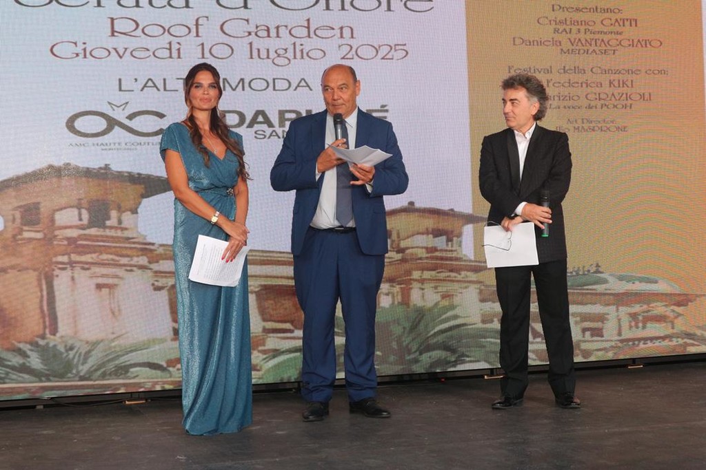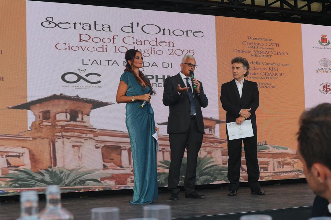 Nella splendida cornice del Roof Garden del Casinò di Sanremo si svolto la “Serata d’Onore”, curata artisticamente da Ilio Masprone e organizzata da Isc Eventi Internazionali SRS di Biella. Un evento cha ha aperto il programma delle serate estive del Casinò di Sanremo e che si è distinto per l’atmosfera raffinata, l’attenzione ai dettagli e un perfetto equilibrio tra arte, moda e alta cucina.