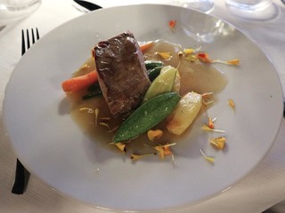 · Filetto di maialino al profumo di Timo, con verdure baby glassate e salsa al Tagete