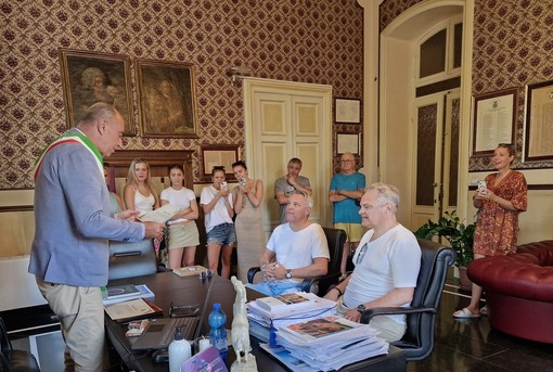 Accompagnati dai propri familiari e da Stefano Elena, titolare dello stabilimento balneare “Bagni Millo” da loro frequentato durante le vacanze, i due ospiti hanno ricevuto la pergamena ufficiale del Comune dal sindaco Marco Melgrati.