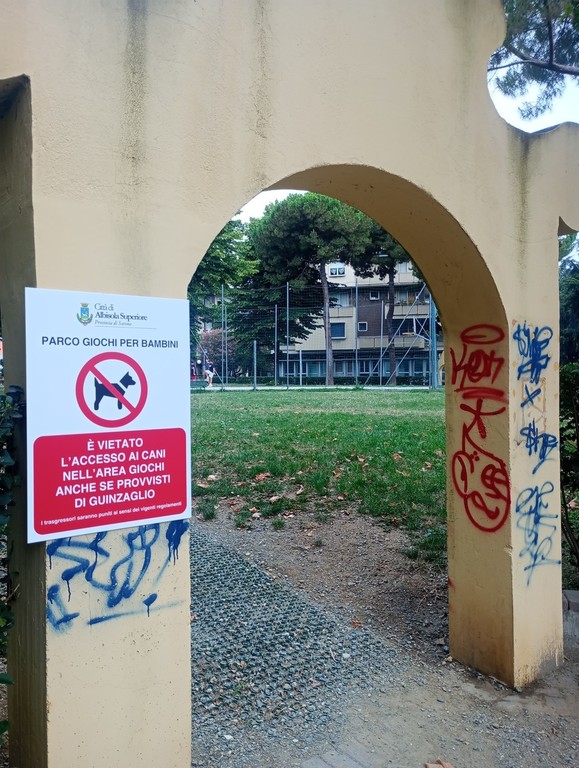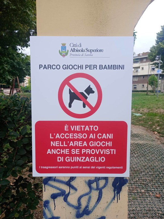 Stretta per la presenza dei cani nel parco dei Conradi ad Albisola Superiore. Il Comune ha infatti posizionato i cartelli di divieto d'accesso.
