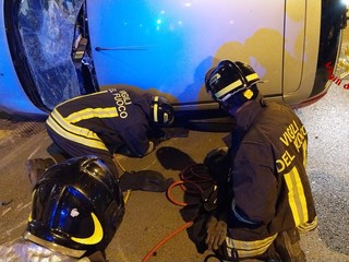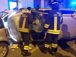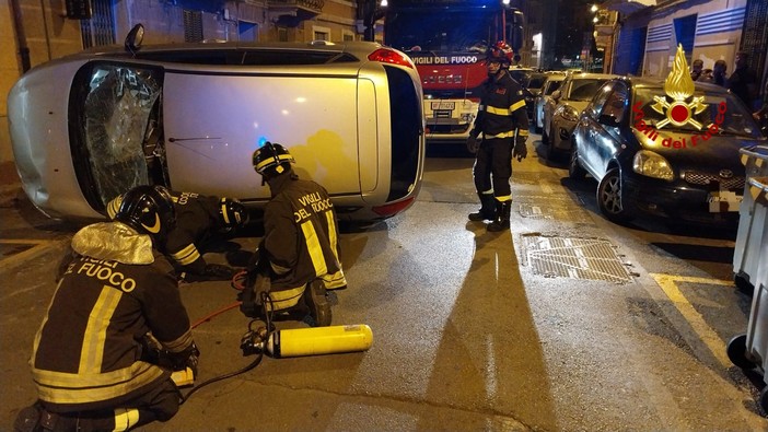 Savona, auto si ribalta in via Giulio Cesare Vanini: un ferito lieve (FOTO)
