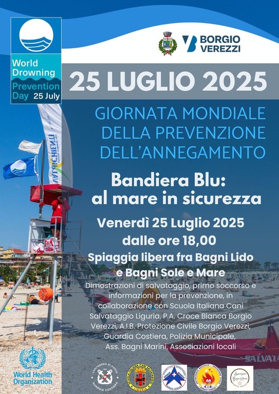 Anche quest'anno, a Borgio Verezzi, si svolgerà la Giornata mondiale della prevenzione dell’annegamento; l’iniziativa, prevista dal progetto “Bandiera Blu”, ha lo scopo di sensibilizzare la comunità sull'importanza della sicurezza in acqua e prevenire incidenti.