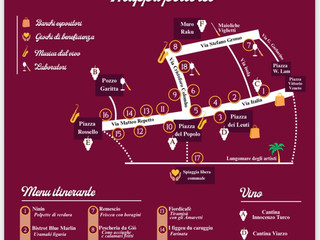 “Vino&Caruggi” non sarà solo vino: a partecipare sarà gran parte del tessuto commerciale cittadino con ristoranti e locali che proporranno menù a tema basati su piatti come trofie al pesto, polpo e patate, acciughe, fritto misto di mare e altre specialità della cucina ligure. A tal proposito sono stati pensati gli adesivi dedicati all’evento, un modo per riconoscere i locali aderenti all’iniziativa i quali hanno optato per sviluppare una propria proposta gastronomica.