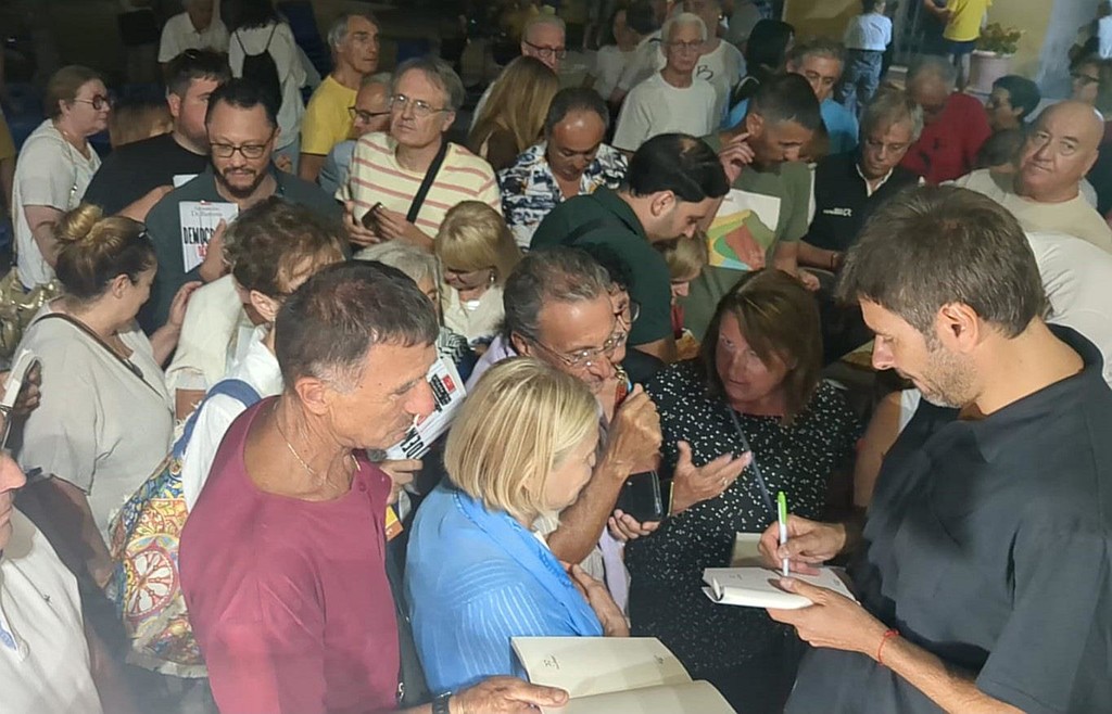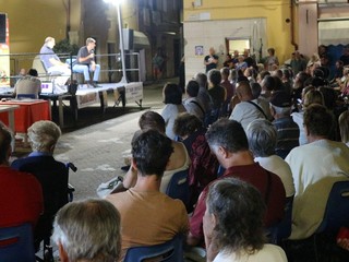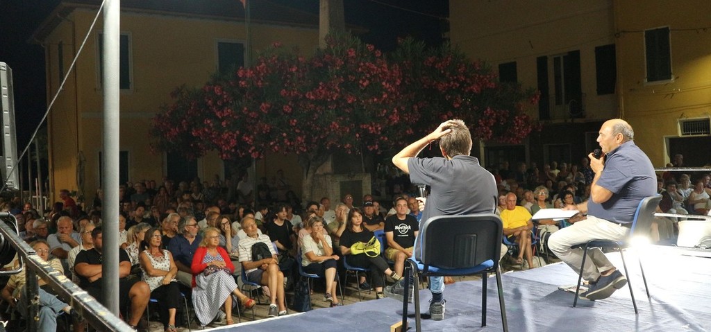 Molto prima dell’inizio dell’incontro, piazza Matteotti era già gremita con persone, giunte da tutta la provincia per ascoltare l’ex parlamentare, che nel suo saggio analizza le cause della crescente disaffezione dei cittadini verso la politica. Un fenomeno evidente, spiega l’autore, nel crollo dell’affluenza elettorale: dall’85,65% delle Europee del 1979 al 48,13% delle ultime consultazioni.