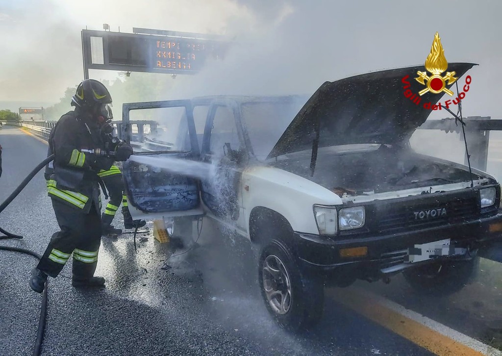 Auto in fiamme in mattinata sull’A6, intervengono i Vigili del Fuoco: nessun ferito
