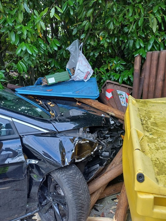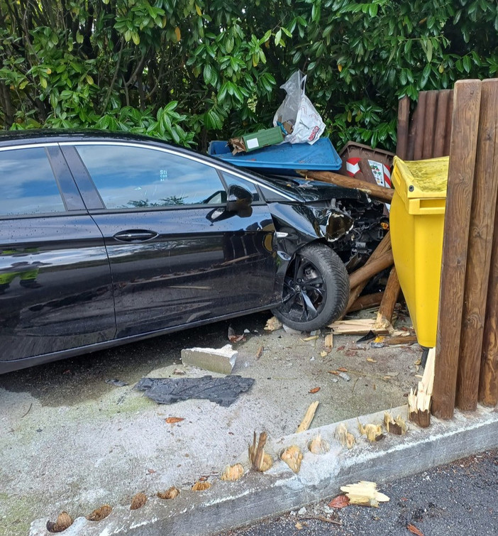 Incidente a Plodio, auto distrugge isola ecologica: il sindaco lancia l’allarme sulla sicurezza stradale