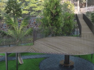 L'intervento prevede la realizzazione di una passerella pedonale accessibile che consente di raggiungere via alla Costa, superando in modo sicuro via Giacomo Matteotti. La passerella sarà rialzata da terra tramite una struttura sorretta da pilastri metallici, in modo da garantire la minima interferenza con il suolo, salvaguardando la permeabilità del terreno e migliorando la qualità paesaggistica e ambientale dell’area verde attraversata. Il piano di calpestio sarà realizzato in legno, materiale scelto per le sue caratteristiche di naturalità, comfort e integrazione ambientale, oltre che per caratteristiche antiscivolo, utile a garantire sicurezza durante l’uso in ogni stagione. Il legno verrà trattato per resistere agli agenti atmosferici e all’usura, assicurando così durabilità e manutenzione contenuta. Le rampe si svilupperanno con una pendenza costante non superiore all’8%, nel rispetto delle normative sull’accessibilità, e saranno affiancate da parapetti di protezione e corrimano, adatti anche all’utilizzo da parte di persone con difficoltà motorie.