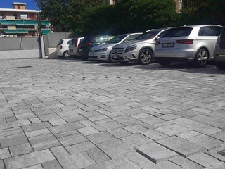 La pavimentazione del parcheggio è da tempo traballante e pericolosa, soprattutto in relazione con il continuo via vai di auto e relativi automobilisti che usufruiscono del parcheggio.