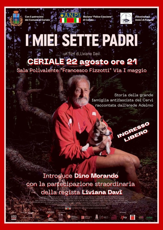È in programma a Ceriale venerdì 22 agosto alle 21, nella sala polivalente Francesco Fizzotti la proiezione del film documentario “I miei sette padri” (2022) della regista Liviana Davì, che sarà presente in sala e introdotta dal presidente della sezione Anpi “Felice Cascione” di Ceriale, Dino Morando.