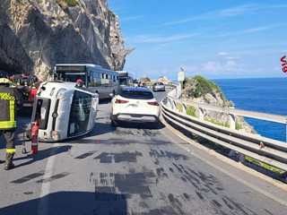 Si ribalta con l'auto nelle curve di Capo Noli, intervento dei vigili del fuoco: un ferito al Santa Corona