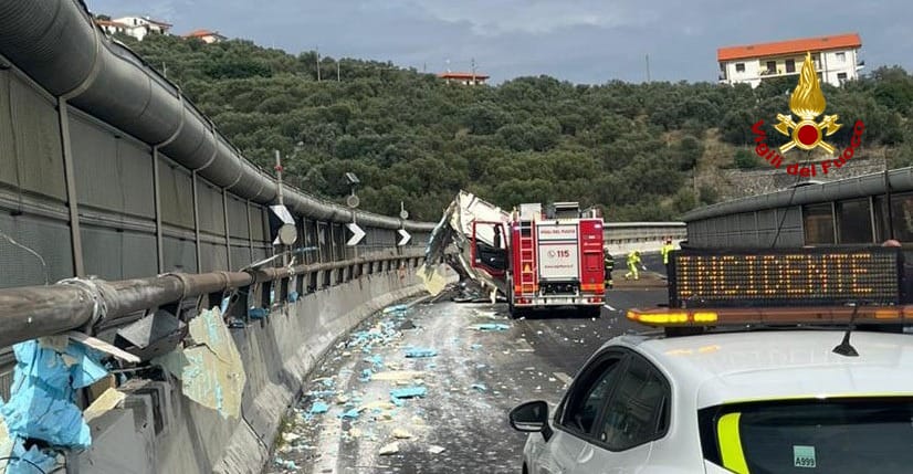 L'incidente nel pomeriggio in direzione Genova. Sul posto sanitari, vigili del fuoco e forze dell'ordine. Divelti alcuni pannelli delle barriere fonoassorbenti che sono precipitati: recuperati