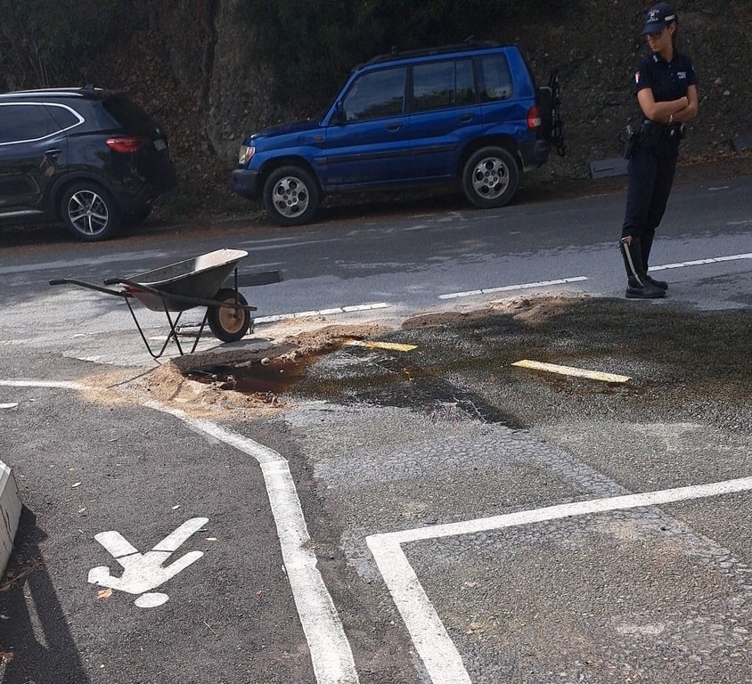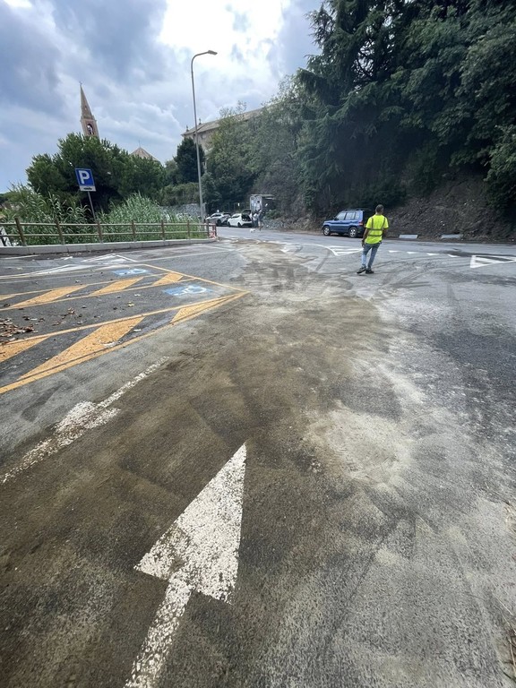Interviene Arpal. Panni intinquinamento sul rio Lavadore. Bonificato il pozzetto che si era riempito di gasolio e posizionata un'ulteriore panna, proseguito il lavoro di pulizia della strada