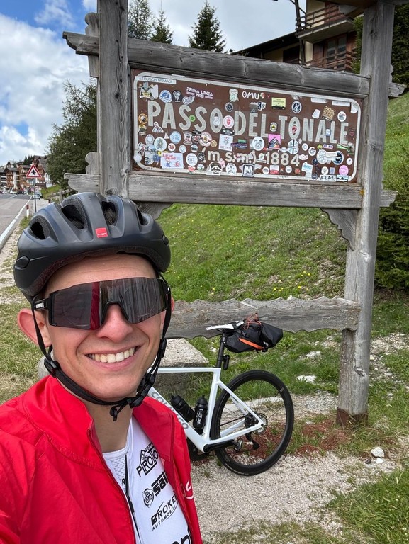 Il viaggio non è stato privo di ostacoli: freddo, pioggia e persino una bufera di neve sullo Stelvio hanno messo alla prova la sua resistenza. Ma i panorami spettacolari e gli incontri inaspettati, tra cui quello con una ciclista professionista del Team Soudal, hanno reso l’esperienza indimenticabile.
