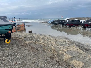 Ad Albenga l’ondata più forte ha allagato il Circolo Nautico e alcuni stabilimenti.
