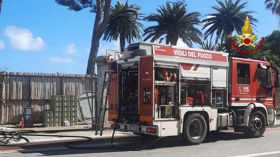 Intervento di vigili del fuoco del Comando provinciale nel pomeriggio di oggi (domenica 31 agosto, ndr) alle ore 14:45, per un incendio che ha interessato le strutture di una location destinata ad eventi in via Nizza.