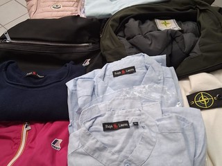 Un grande quantitativo di capi d'abbigliamento di diverse marche da Ralph Lauren a Moncler e K-Way.