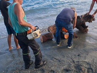 Questa mattina il litorale cellese è infatti stato praticamente sommerso da tronchi e alberi che hanno "invaso" sia il mare che chiaramente anche la riva.