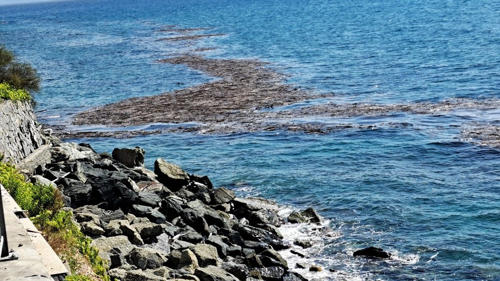 Lo scirocco ha spinto il legname della violenta mareggiata dei giorni scorsi sulla costa di Celle Ligure.
