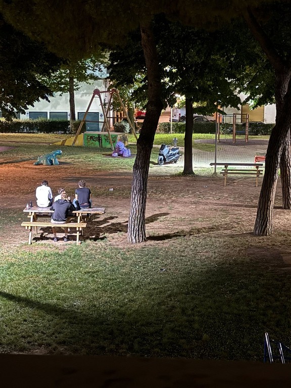 E questo è solo di giorno. Al calar del sole, quando l'oscurità avvolge ogni cosa, la storia si ripete: urla, schiamazzi, musica a tutto volume, corse sfrenate su skateboard in mezzo alla strada e contromano... insomma, ogni giorno se ne inventano una.