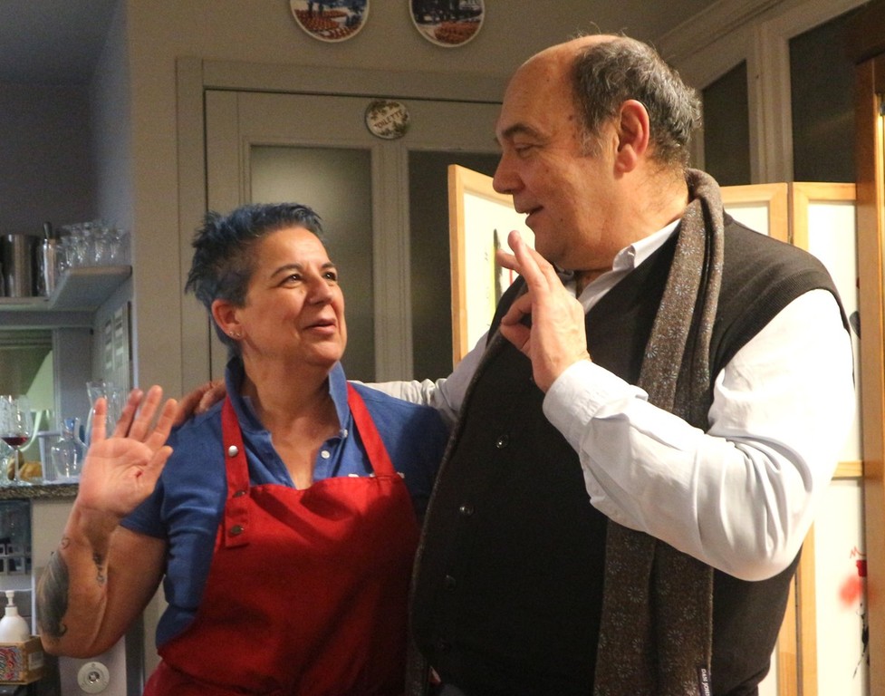 la chef Tiziana Piras e il giornalista Claudio Porchia in una serata a tema alla Pignatta Rossa