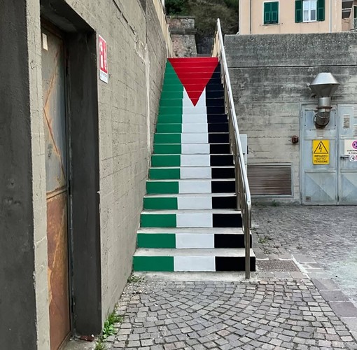 Viene realizzata, senza permesso, una scalinata con i colori della Palestina e il giorno successivo viene cancellata dagli operai del Comune su richiesta dell'amministrazione comunale.