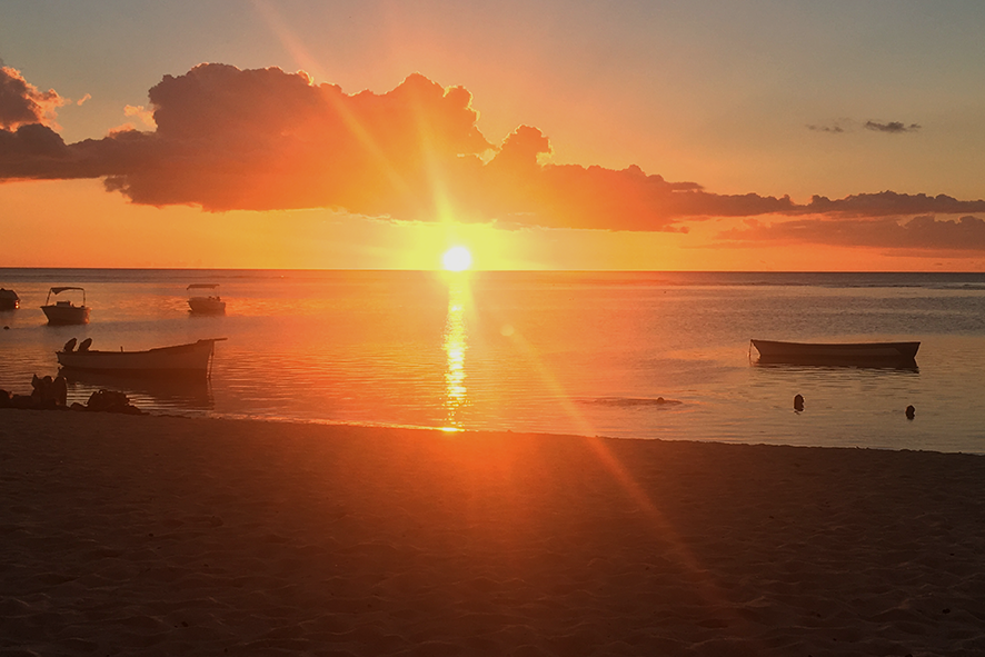 Al mattino il risveglio è accompagnato da un silenzio diverso da quello di casa, fatto di palme e di mare. Camminare verso la spiaggia significa entrare in un tempo sospeso: gli ombrelloni di paglia, il cielo incerto tra luce e nuvole. Le giornate iniziano così, senza fretta. Le persone del posto si muovono con la stessa calma, come se l’isola imponesse un ritmo proprio. Non è lentezza, ma un modo diverso di abitare il tempo: senza rincorrerlo, senza strapparlo via. Se le mattine invitano all’ascolto, i tramonti sono pura contemplazione. Sdraiati sulla sabbia, una bevanda fresca in mano, guardiamo il cielo incendiarsi di arancio e rosso. I colori si riflettono sull’acqua immobile, le barche restano ferme nella laguna. È un teatro naturale senza spettatori rumorosi: solo sguardi, respiri profondi e la certezza che quei minuti non torneranno. Mauritius, in quell’istante, si rivela nella sua forma più semplice e universale: un invito a guardare senza bisogno di altro.