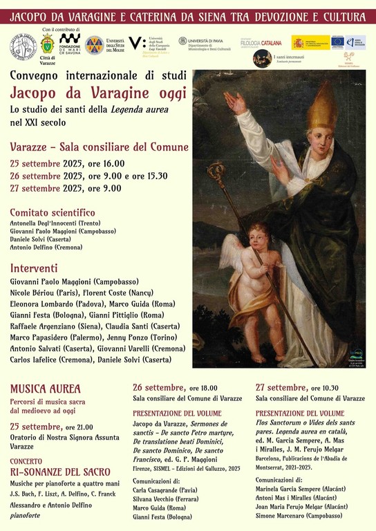 In apertura il Comune conferirà la cittadinanza onoraria al professor Maggioni "per il contributo alla conoscenza degli scritti di Jacopo da Varazze e per rendere onore alla sua assidua attività di studioso". Collateralmente il 25 settembre alle ore 21 nell'Oratorio Nostra Signora Assunta si terrà il concerto "Ri-sonanze del sacro. Musiche per pianoforte a quattro mani", sesto della rassegna "Musica aurea. Percorsi di musica sacra dal Medioevo ad oggi". Alessandro e Antonio Delfino eseguiranno arrangiamenti per pianoforte a quattro mani di brani originariamente per organo di Johann Sebastian Bach, Franz Liszt e César Franck e uno di Antonio Delfino ispirato al capolavoro jacopeo.