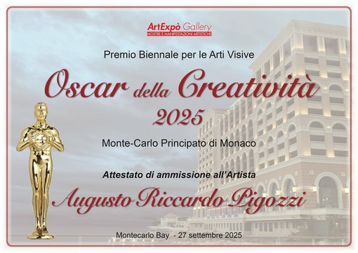 Augusto Riccardo Pigozzi, artista ingauno di grande talento e sensibilità, sarà insignito del prestigioso Premio Oscar della Creatività 2025, riconoscimento internazionale conferito per “l’essenzialità creativa del suo percorso artistico”.