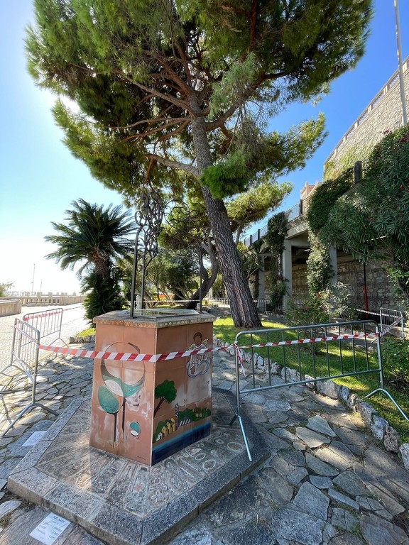 Lo scorso 25 aprile un grosso ramo sul lungomare dopo la biblioteca comunale si era staccato da un pino e fortunatamente non aveva procurato danni a persone, ma è stata rotta una delle opere di ceramica che era posizionata sotto.
