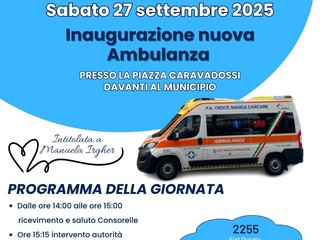 La Croce Bianca di Carcare rafforza la propria azione di soccorso con l’ingresso di un nuovo mezzo: un’ambulanza Fiat Ducato attrezzata come unità mobile di rianimazione, che sarà intitolata a Manuela Irgher, giovane studentessa deceduta nel giugno 2003 in un incidente stradale. L’inaugurazione è prevista per sabato pomeriggio, 27 settembre, a partire dalle ore 14 in piazza Caravadossi, e sarà accompagnata da un pomeriggio di festa aperto a tutta la cittadinanza.