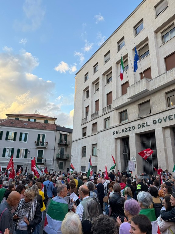 Savona si riunisce nuovamente per Gaza, questa volta con un presidio sotto la Prefettura. Tante le persone che alle 18 si sono ritrovate in piazza Saffi per manifestare solidarietà alla Palestina e chiedere la fine della guerra. In piazza, manifesti a sostegno della Global Sumud Flottilla e contro il conflitto.