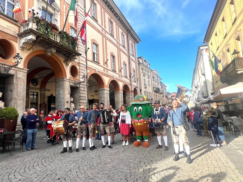 La grande parata inaugurale è partita dal Palazzo Municipale di Cuneo aperta dalla mascotte Luppolo e dalla band Kuni Kumpel. A seguire gli sbandieratori del Gruppo Le Nuvole, i musici del Borgo San Martino di Saluzzo, le majorette The Scarlet Star, la Banda musicale di Boves, le cheerleader dell’Asd Aster Cheer e i folkloristici trenini.