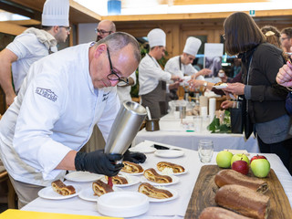 E poi, come da tradizione, le Stelle. Quelle Michelin, brillanti al fianco del Bitto. Gli chef di Euro-Toques Italia hanno dato vita a piatti che hanno saputo reinventare il formaggio senza mai tradirne l’essenza. Insieme a loro, il presidente dell’associazione, Enrico Derflingher, grandi nomi della cucina internazionale e giovani talenti emergenti. A fare gli onori di casa, ancora una volta, Gianni Tarabini – segretario generale di Euro-Toques ed executive chef de La Fiorida – custode di una Stella Michelin dal 2013 e di una Stella Verde dal 2022, affiancato dalla sua brigata.