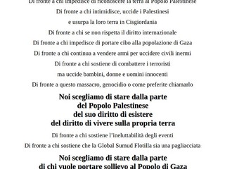 Un passaggio è dedicato anche a chi, secondo il gruppo, ridicolizza o minimizza iniziative di solidarietà come la Global Sumud Flotilla, missione internazionale impegnata a portare sostegno alla popolazione di Gaza. “Noi scegliamo di stare dalla parte di chi vuole portare sollievo al Popolo di Gaza”, ribadiscono i firmatari.